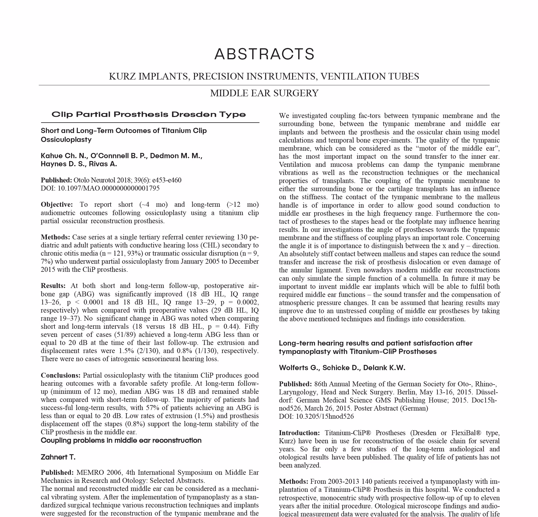 All scientific abstracts and abstracts on others areas of Ossiculoplasty can be read here